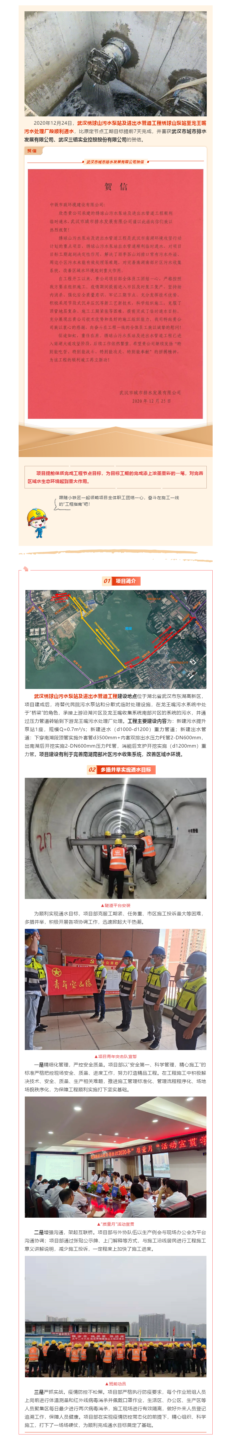 武漢繡球山污水泵站及進出水管道工程繡球山泵站出水管段順利通水