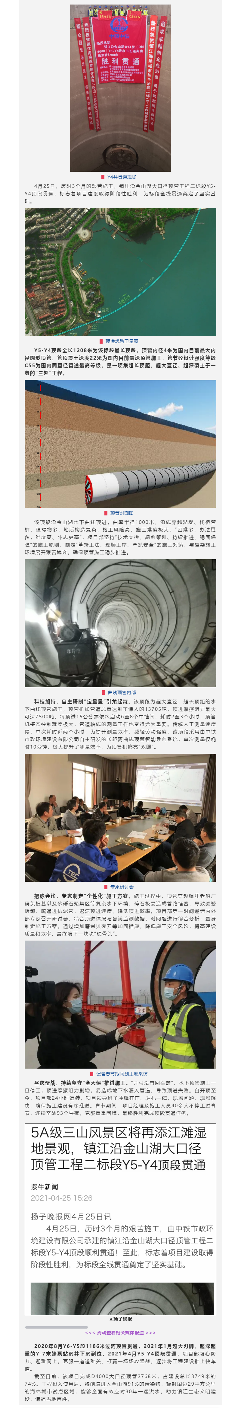 鎮江沿金山湖大口徑頂管工程二標段Y5-Y4頂段勝利貫通